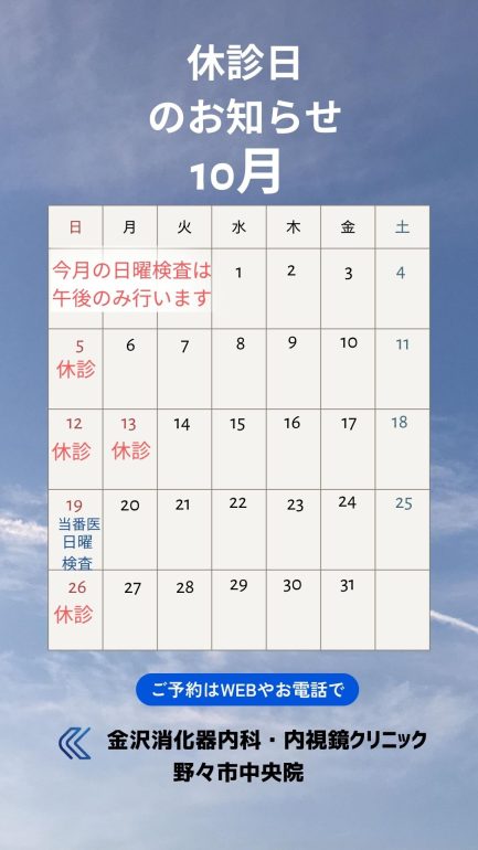 10月22日ですが、院内工事のため診療開始は10時からとなります。