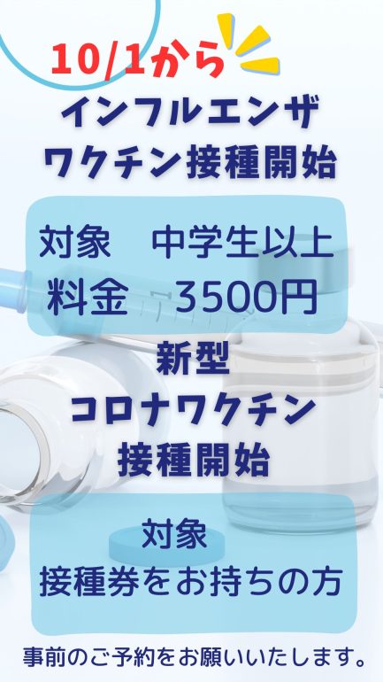 インフルエンザワクチン・新型コロナワクチンの接種を開始します。 2025.10.01